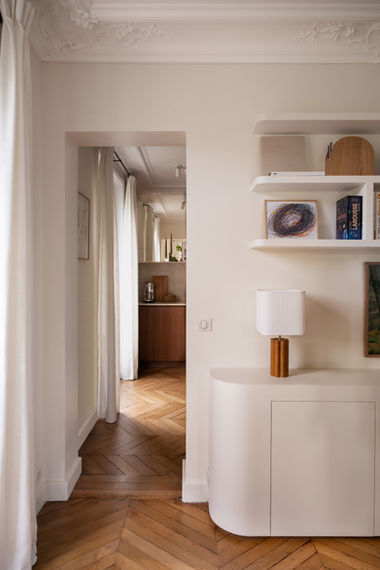 L’enjeu pour Studio Castille a été de retrouver l’esprit haussmannien : ses moulures, ses symétries, ses volumes généreux, tout en intégrant les besoins d’une vie familiale contemporaine.