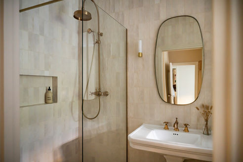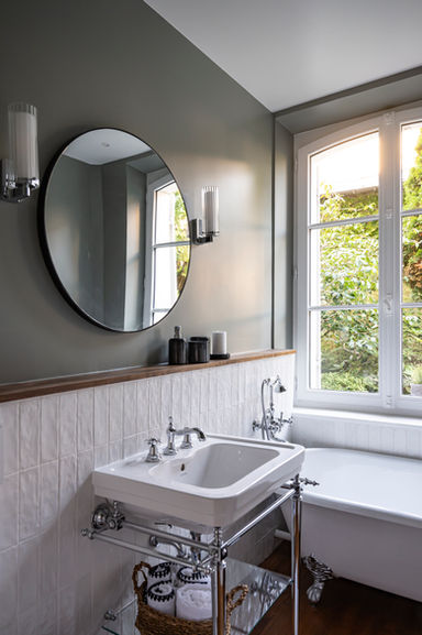 Au-delà de la restructuration architecturale, nous avons insufflé une nouvelle âme à cet intérieur en harmonie avec son cachet historique. Le choix des couleurs et des papiers peints a été pensé pour affirmer le caractère des espaces tout en respectant l’authenticité des lieux. Nous avons sélectionné des matériaux nobles et intemporels, alliant esthétisme et fonctionnalité, afin de créer un cadre de vie élégant et chaleureux.